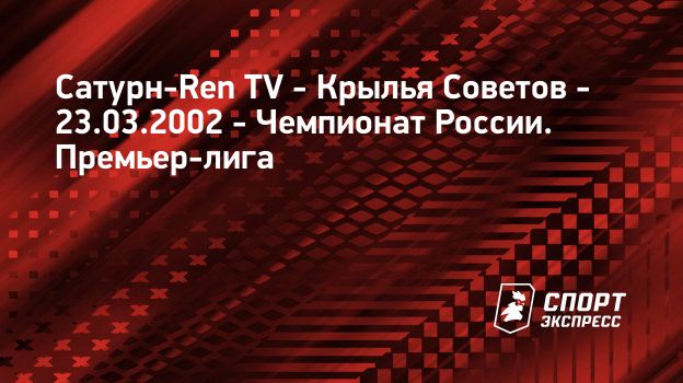 "СЭ" рад приветствовать всех любителей футбола! Здесь вас ждет онлайн-трансляция матча Сатурн-Ren TV (Раменское) – Крылья Советов (Самара). Чемпионат России. Премьер-лига, 4-й тур Матч пройдет 23 марта 2002 года на стадионе Леон Арена (Раменское, Россия). Начало - в 18:00 по московскому времени.