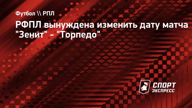 РФПЛ вынуждена изменить дату матча "Зенит" - "Торпедо"