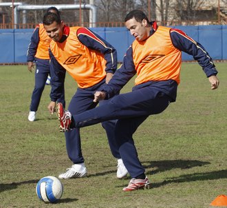 И, наконец, на десерт - беговые упражнения с ускорениями и короткими паузами. Группе стайеров можно было бы посочувствовать, если бы я не стал свидетелем того, как на соседнем газоне Рамон в одиночку совершил десять забегов по 400 метров. А что делать, если хочется как можно скорее забыть о травме и вернуться в большой футбол! |