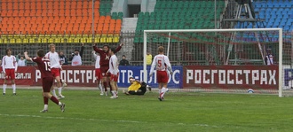 Второй тайм стал продолжением первого. Команды ждали ошибки соперника, стараясь избегать своих. Первыми серьезную оплошность допустили гости, за что и поплатились. Сибайя из центрального радиуса запустил "свечу" на левый фланг. Сираков, до этого смотревшийся надежно, вроде бы контролировал мяч и провожал его за боковую линию. Однако Баляйкин (Курбан Бердыев сделал удачную замену) выскочил из-за спины защитника и прорвался флангу до лицевой линии. Далее последовала передача на набегающего Семака, который низом ударил по воротам, и мяч, задев кого-то из защитников, влетел в сетку мимо Габулова. |