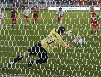 "Локомотив" мог дожать соперника на последних минутах. На исходе основного времени Гогуа "схлопотал" второй горчичник за симуляцию и вынужден был покинуть поле, а несколько секунд спустя в штрафной гостей мяч нашел руку Джудовича, и судья указал на точку. К мячу, вопреки указаниям Рахимова, подошел Одемвингие. Нигериец посылал мяч в левый нижний угол, но Хомич парировал удар. |