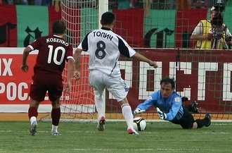 Казанцы начали активнее и построили несколько потенциально опасных атак, в завершении которых Гекденизу должен был помочь экс-"горожанин" Адамов. Но ни вместе, ни по одиночке два бронзовых призера Euro-2008 голевых ходов не нашли. "Сатурн" довольно четко действовал в обороне и при возможности проводил свои атаки. Кириченко и Топич при поддержке Еременко и Каряки, правда, у чужих ворот тоже не преуспели. |