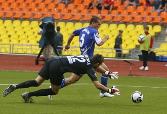 Еще до гола и те, и другие имели по отличной возможности выйти вперед. Фернандес допустил ошибку у своих ворот, Прудников мяч подобрал и отпасовал Майдане, а аргентинец здорово пробил слева под перекладину - Габулов в красивом прыжке отвел угрозу. В ответ Данни с помощью фола Советкина заработал штрафной, а Колодин его быстро разыграл, отдав передачу на Семшова. Полузащитник в касание послал мяч мимо Плетикосы, да попал в штангу. |