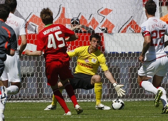 0:2 - еще не повод для досрочной капитуляции. В прошлом году куда в более напряженной ситуации красно-белым удалось отыграться в Черкизове именно при таком отставании. Первым попытку исправить положение предпринял Дзюба, точным ударом замкнувший подачу. Но чуть ранее Николаев обнаружил фол со стороны спартаковца. И все же гол в ворота Чеха до перерыва состоялся. Тот же Дзюба принял передачу из глубины, выстоял в борьбе с главными "питбулями" соперника Дуймовичем и Родолфу, а набежавший Алекс после срезки вдоль штрафной послал мяч в угол. Настроение Карпина и красно-белой торсиды немного улучшилось. |