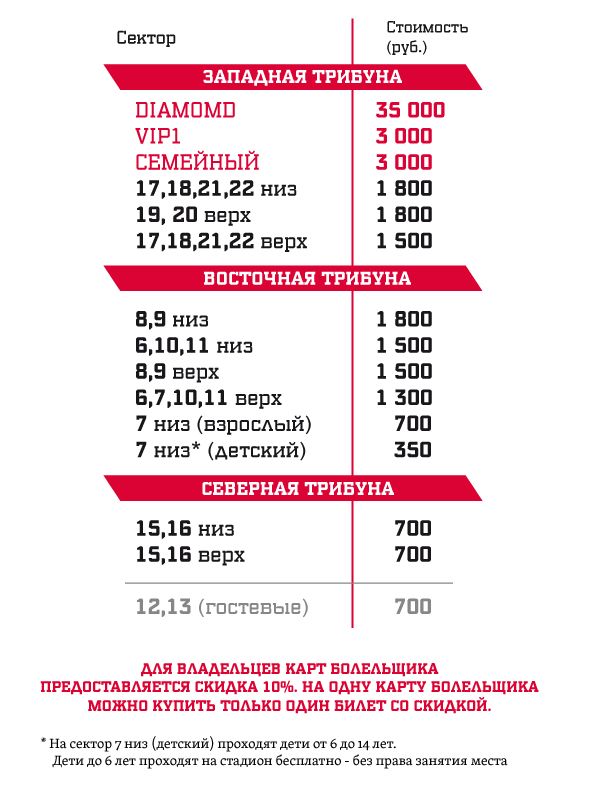 "Спартак" объявил о начале продаж билетов на первый домашний матч с "Рубином", сообщает официальный сайт красно-белых. Самый дешевый билет для болельщиков москвичей обойдется в 700 рублей, по такой же цене квитки смогут приобрести и поклонники казанцев – за эту сумму фанаты смогут следить за игрой с трибун, расположенных за воротами. Самые дорогие билеты на матч стоят 35 тысяч рублей – их обладатели будут располагаться на центральной трибуне в ложе ВИП Западной трибуны.