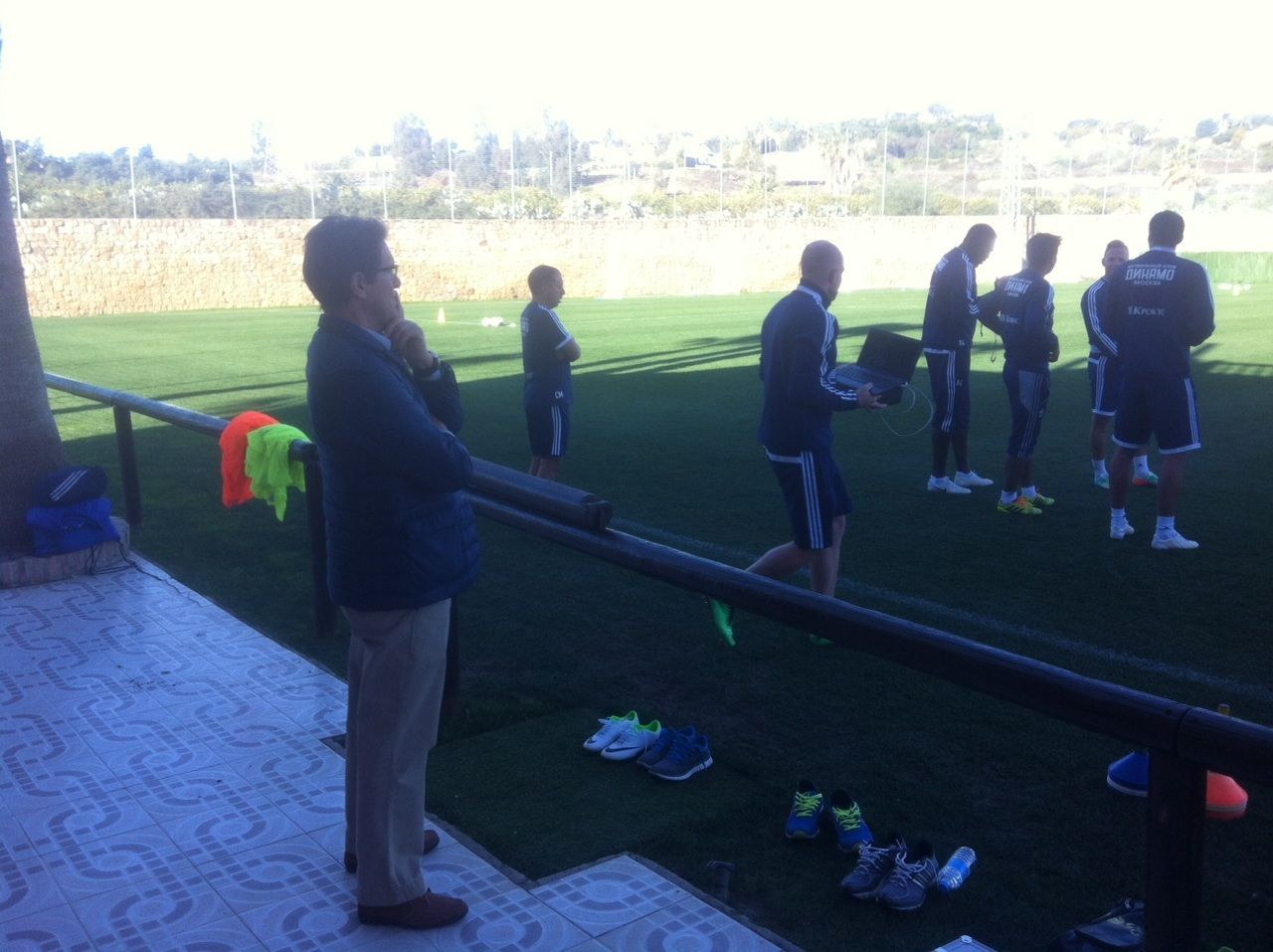 Главный тренер сборной России посетил утреннюю тренировку "Динамо" в Марбелье, передает спецкор "СЭ" Филипп ПАПЕНКОВ. Итальянец сначала тепло пообщался пару минут с наставником бело-голубых Даном Петреску, а затем задумчиво наблюдал за занятием.