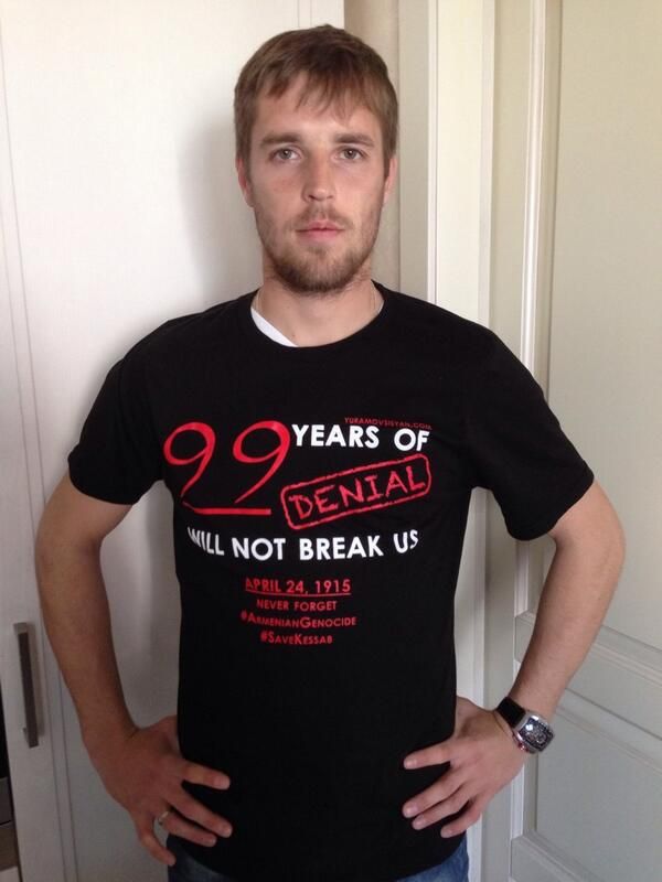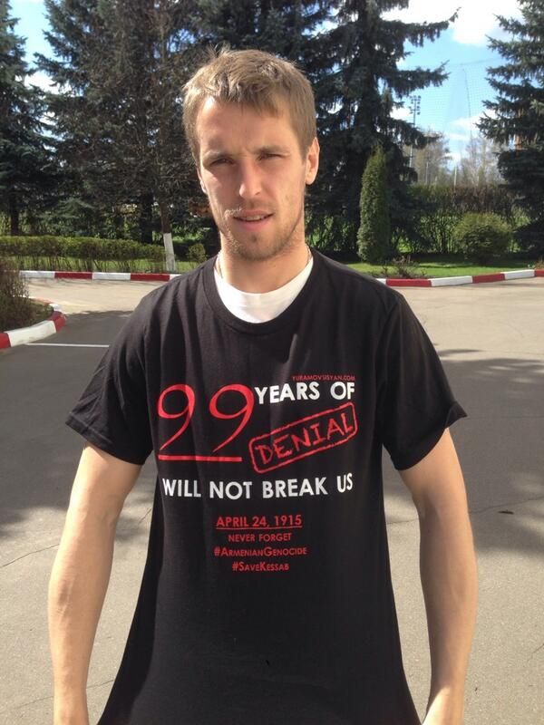 Полузащитники "Спартака" Дмитрий и Кирилл Комбаров выложили в своем твиттере фотографии в футболках, посвященных 99-летию дня памяти геноцида армян в Османской империи (1878-1915 гг). Напомним, что в составе красно-белых выступают два футболиста сборной Армении – Арас Езбилис и Юра Мовсисян.