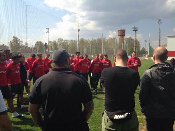 Тренировку "Спартака" на клубной базе в Тарасовке посетили болельщики. Они проводят с игроками "вежливую" беседу, отмечается на одной из фанатских интернет-страниц красно-белых. Напомним, что в 2014 году москвичи провели восемь матчей в премьер-лиге (1 победа, 2 ничьих и 5 поражений, мячи 4-12), а также вылетели из Кубка России после поражения от клуба второй лиги ("Тосно"). "Спартак", претендовавший на чемпионство, вынужден бороться за четвертое место с "Динамо" и "Краснодаром".