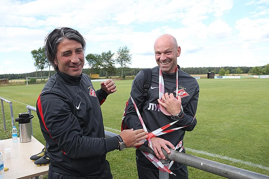К тренерскому штабу "Спартака" на тренировочном сборе в Германии присоединился новый специалист. Наставник красно-белых Мурат Якин поприветствовал коллегу. Завтра "Спартак" проведет первый товарищеский матч олимпийской сборной ОАЭ.