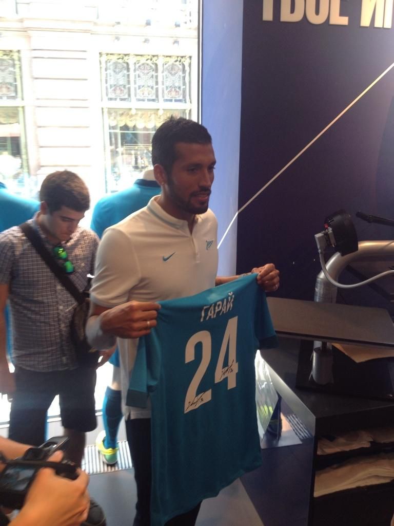 "Зенит" провел презентацию новичка команды – 27-летнего центрального защитника Эсекиэля Гарая, информирует официальный твиттер сине-бело-голубых. Футболист, перешедший из "Бенфики" за 6 миллионов евро, будет выступать за питерцев под 24-м номером. Гарай только недавно присоединился к "Зениту", так как получил дополнительный отдых после чемпионата мира-2014, где он в составе сборной Аргентины дошел до финала.
