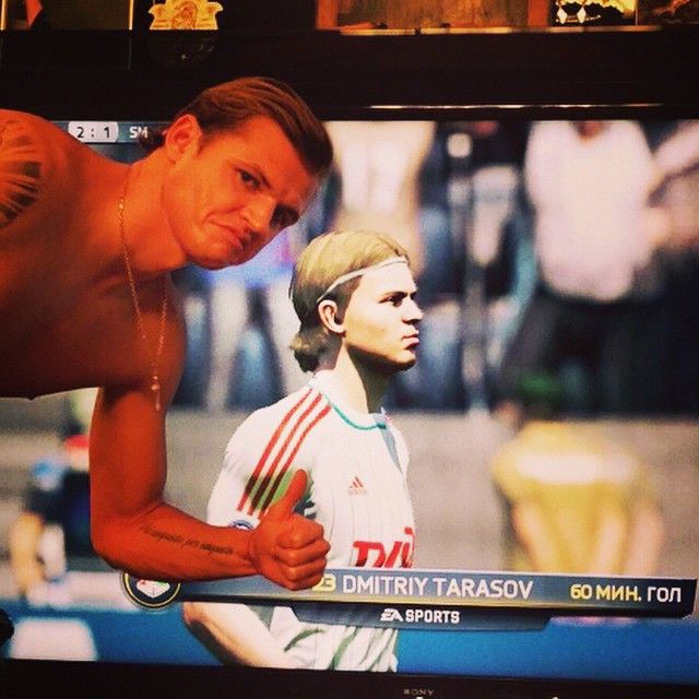 Полузащитник "Локомотива" Дмитрий Тарасов похвастался голом, забитым им в компьютерной игре. На своей странице в Instargam хавбек выложил фотографию со своим изображением на фоне празднующего гол виртуального Дмитрия Тарасова. На 60-й минуте 27-летний футболист сделал счет 2:1 в пользу железнодорожников. Судя по картинке, соперником "Локо" был "Спартак".