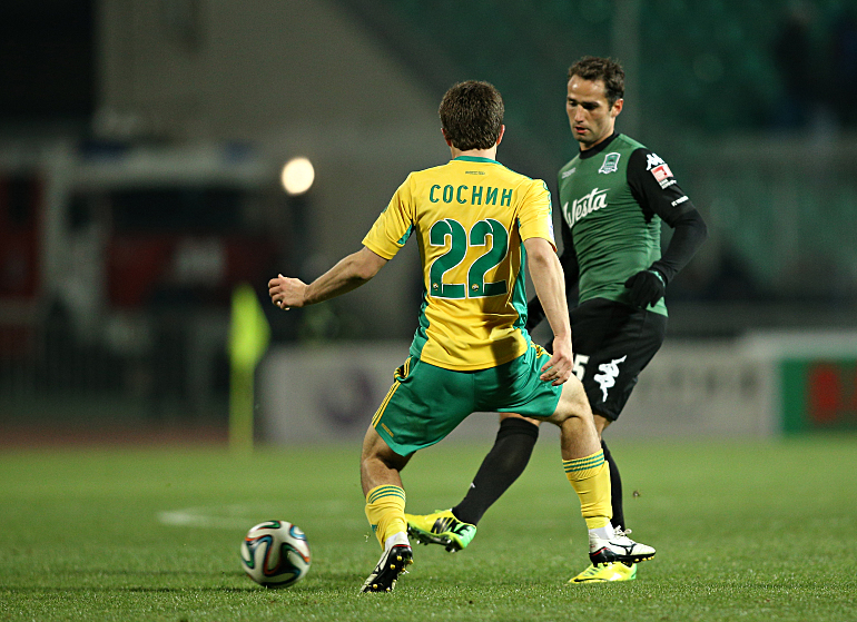 30 марта 2014. Чемпионат России. 23-й тур. "Кубань" – "Краснодар" – 1:3. 41' – 1:1 (гол), 79' – 1:3 (гол).