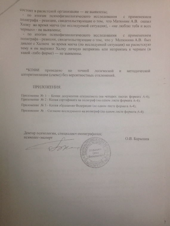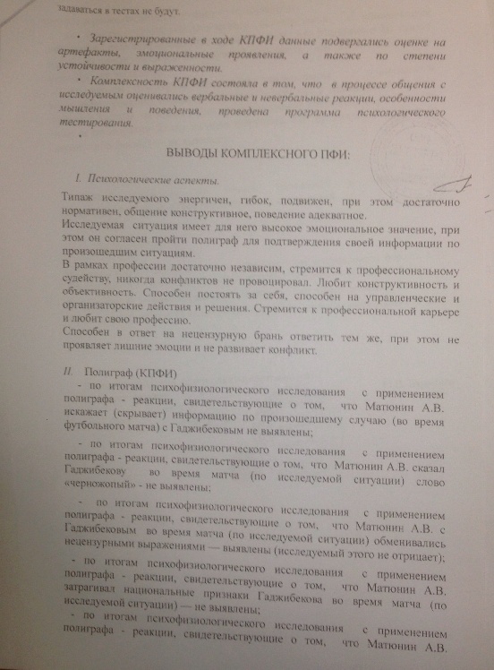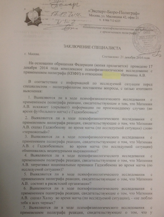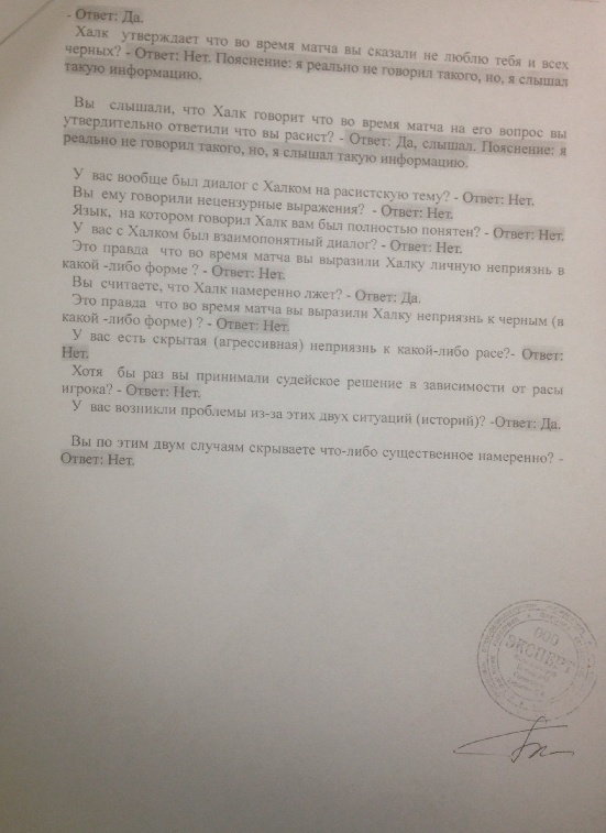 Как мы уже сообщали, в распоряжение "СЭ" поступило официальное заключение исследования арбитра Алексея Матюнина на детекторе лжи в рамках проведения расследования дела "Халка и Матюнина". Приводим вторую часть документов, где арбитр отвечает на вопросы по поводу конфликта с бразильцем в ходе матча 15-го тура чемпионата России "Мордовия" - "Зенит", состоявшегося 29 ноября.