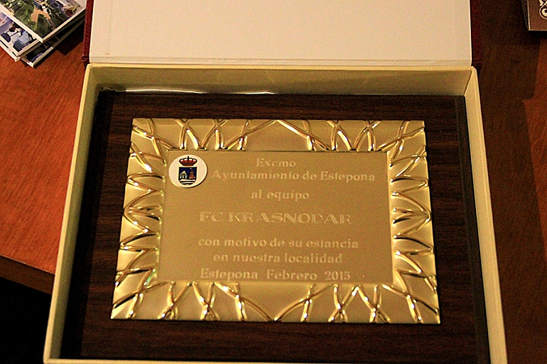 "На память от муниципалитета Эстепоны футбольной команде "Краснодар" по случаю ее пребывания в нашей местности. Февраль 2015 года", – гласит надпись на памятной доске.