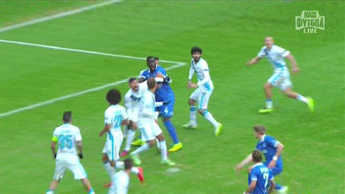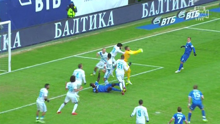 На 43-й минуте матча 20-го тура премьер-лиги "Динамо" - "Зенит" после розыгрыша штрафного удара хозяевами поля арбитр Виталий Мешков имел все основания наказать зенитовцев 11-метровым ударом. Когда мяч был в игре и летел в направлении Самба, в штрафной площади гостей Гарай обнял динамовца руками. Самба упал и не сумел сыграть в мяч. Мешков нарушение правил не зафиксировал - матч продолжился. (Александр БОБРОВ)