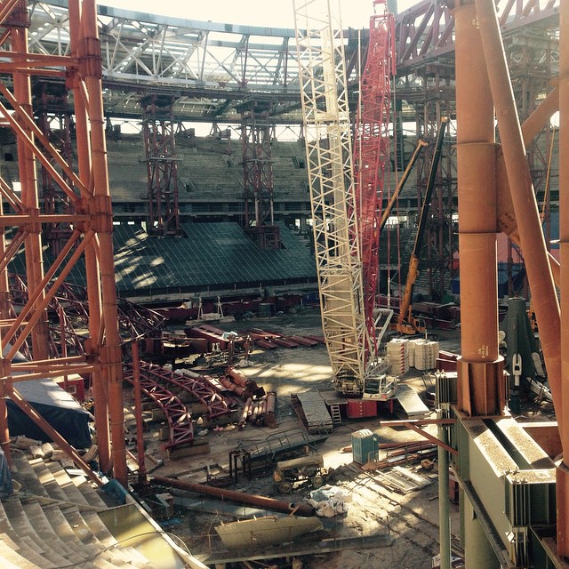 На стадионе "Зенит Арена" ведется сборка раздвижной части крыши