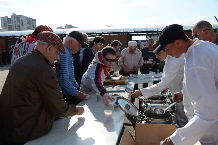 "Амкар" перед матчем с "Локомотивом" накормил болельщиков кашей с мясом
