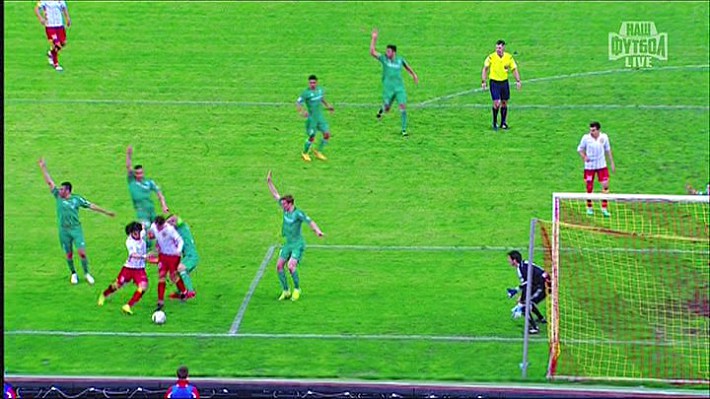 Атака туляков развивалась следующим образом. Кузнецов сделал пас назад Хагушу и продолжил движение вдоль линии ворот. Через секунду мяч покатился в его направлении, отскочив от ноги Хагуша. И в этот момент Кузнецов оказался за линией офсайда.