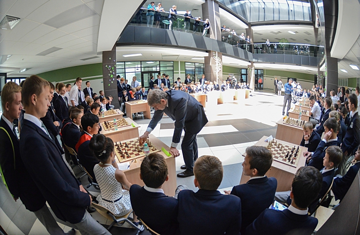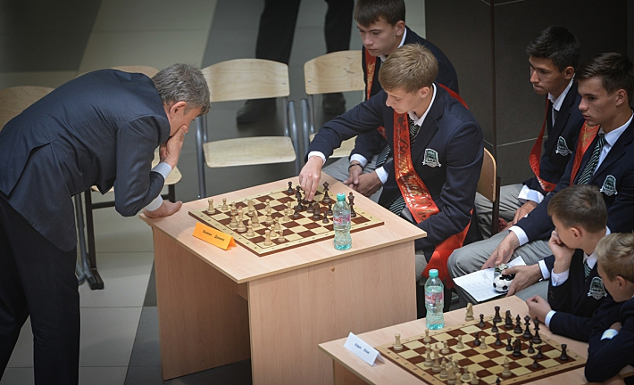 Сегодня в академии "Краснодара" состоялся сеанс одновременной игры в шахматы, в котором приняли участие президент клуба Сергей Галицкий и юные футболисты, сообщает официальный сайт "быков". Мероприятие было приурочено к празднованию "Последнего звонка". Пятнадцать воспитанников академии, показавших лучший результат в отборочном раунде, вели борьбу за победу без перерыва на протяжении более трех часов. В итоге противостояние впервые завершилось в пользу ребят. Побед в своих партиях добились Вячеслав Ильинский, Никита Рыскаль, Алекс Мацукатов, Матвей Сафонов, Альберт Оганьян, Дмитрий Бубенин, Денис Неклюдов, Даниил Фомин, Илья Агрыч и Павел Дашин.