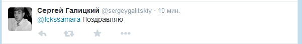 "Поздравляю", - написал Галицкий в своем твиттере.