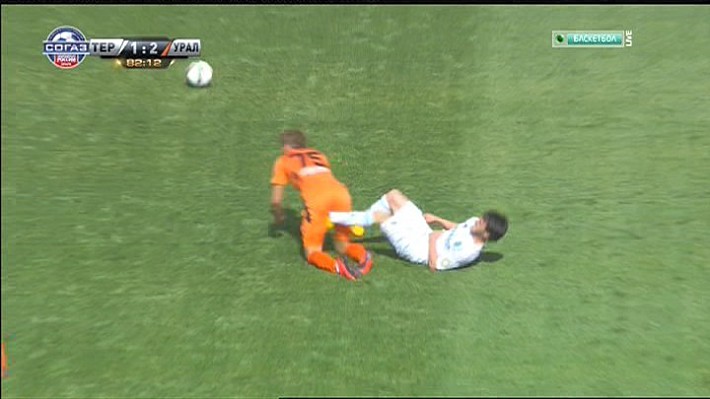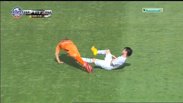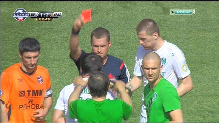 Решение арбитра матча "Терек" – "Урал" Владислава Безбородова, на 83-й минуте удалившего игрока хозяев Ризвана Уциева, можно поддержать. Защитнику грозненского клуба, упавшему на газон после единоборства с Сергеем Серченковым, что-то не понравилось в действиях соперника, и он нанес футболисту гостей удар ногой. Безбородов показал Уциеву красную карточку. (Александр БОБРОВ)