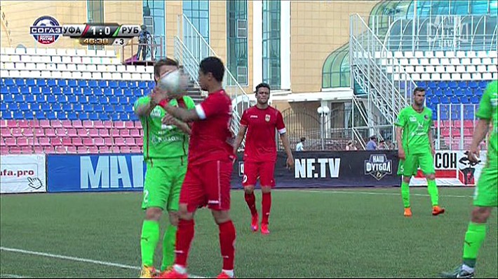 На 45+1-й минуте матча "Уфа" – "Рубин" арбитр Алексей Николаев имел все основания оценить действия капитана гостей Олега Кузьмина красной карточкой. После остановки игры защитник казанской команды умышленно бросил мяч в лицо футболисту "Уфы" Диегу. Можно предположить, что судья не видел деталей инцидента, и принимал решение, пользуясь подсказкой резервного рефери Николая Волошина. В итоге Кузьмин получил предупреждение. (Александр БОБРОВ)