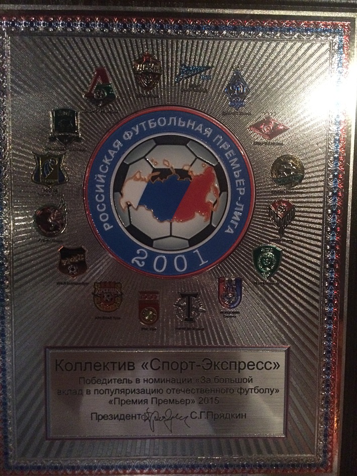 Сегодня РФПЛ на гала-вечере подводит итоги сезона-2014/15. Среди номинантов сезона оказался и "Спорт-Экспресс". В частности "СЭ" награжден в номинации "За большой вклад в популяризацию отечественного футбола". Награда заверена лично главой премьер-лиги Сергеем Прядкиным. В то же время индивидуальную награду получил легендарный корреспондент "СЭ" Александр Львов. В частности экс-пресс-атташе сборной России и московского "Спартака", с которым шесть раз становился чемпионом России, получил приз в номинации "Вся жизнь в футболе".