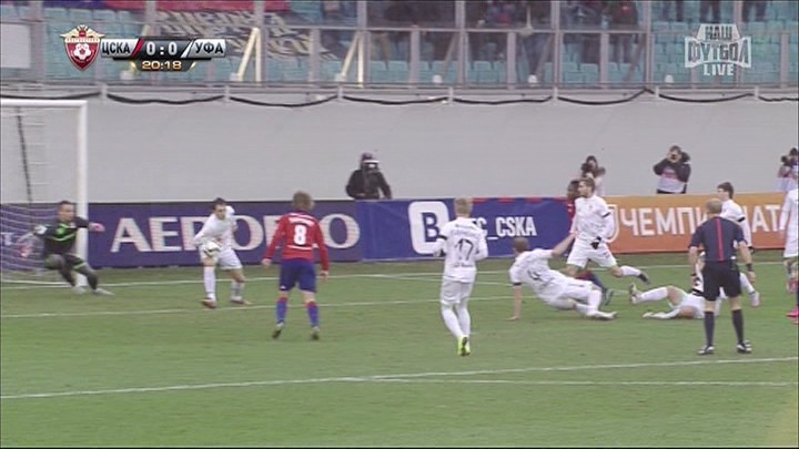 На 20-й минуте матча 14-го тура чемпионата России ЦСКА – "Уфа" правильное решение принял арбитр Владимир Москалев, наказав гостей 11-метровым ударом. После удара по воротам уфимцев Зорана Тошича произошел контакт мяча с правой рукой Павла Аликина. Рука находилась в неестественном положении (отставлена в сторону), и судья верно зафиксировал нарушение правил, назначив пенальти и показав защитнику желтую карточку. (Александр БОБРОВ)