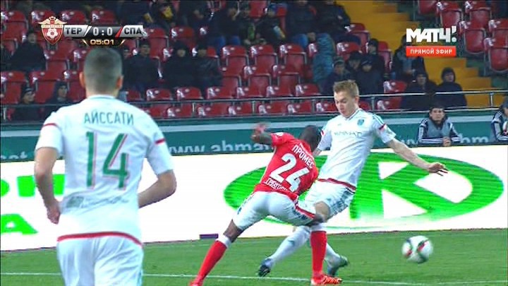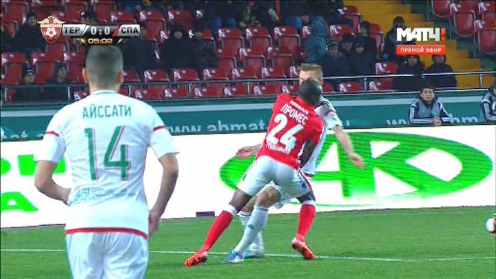 На 5-й минуте матча 15-го тура чемпионата России "Терек" – "Спартак" грубо ошибся арбитр Кирилл Левников, назначивший штрафной удар в пользу гостей. Судье показалось, что Андрей Семенов нарушил правила в единоборстве с Квинси Промесом. Между тем на видеоповторе ясно видно, что никакого фола защитник "Терека" не совершал. Разыграв штрафной, спартаковцы открыли счет.