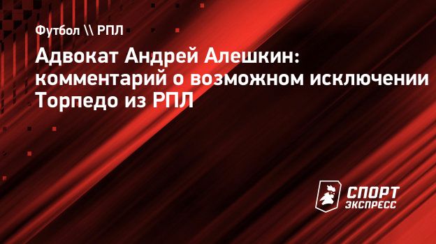 Адвокат Андрей Алешкин, представляющий интересы совладельца «Торпедо» Леонида Соболева, в разговоре с «СЭ» поделился мнением о деятельности РФС по возможному исключению московской команды из РПЛ.