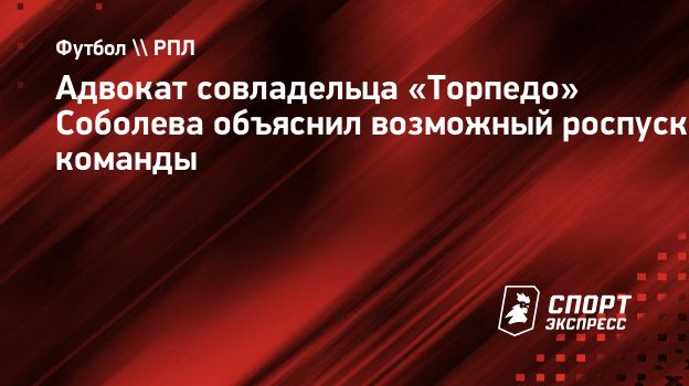 Адвокат Александр Добровинский, представляющий интересы совладельца «Торпедо» Леонида Соболева, в разговоре с «СЭ» ответил на вопрос о возможном роспуске команды в случае исключения из РПЛ.