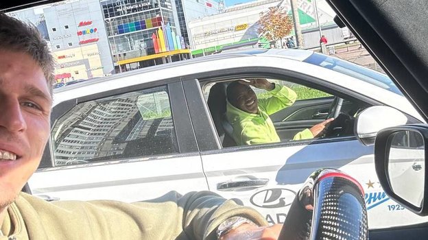 Ранее нападающий «Зенита» Александр Соболев выложил фото с Барриосом в автомобиле LADA.