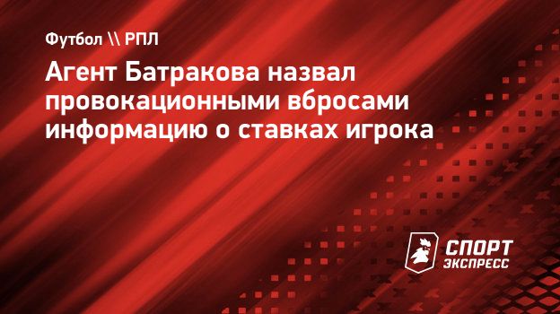 Агент Батракова назвал провокационными вбросами информацию о ставках игрока