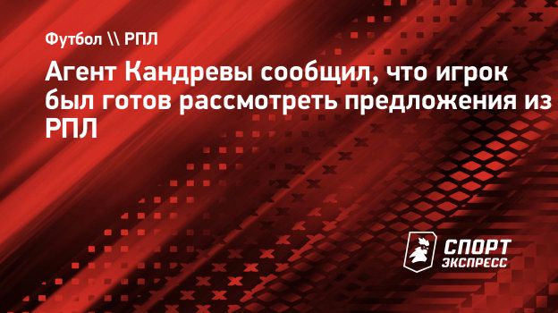 Агент Кандревы сообщил, что игрок был готов рассмотреть предложения из РПЛ
