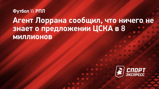 Ранее журналист Иван Карпов в своем Telegram-канале сообщил, что ЦСКА сделал «Фламенго» финальное предложение по Лоррану размером в 8 миллионов.