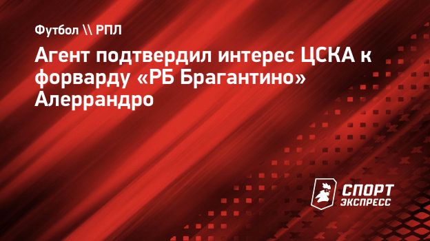 Агент Карлос Майнберг Нето, представляющий интересы нападающего «РБ Брагантино» Алеррандро, подтвердил интерес ЦСКА к 25-летнему футболисту, информирует Metaratings.ru.