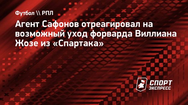 Агент Алексей Сафонов прокомментировал возможный уход нападающего Виллиана Жозе из «Спартака».