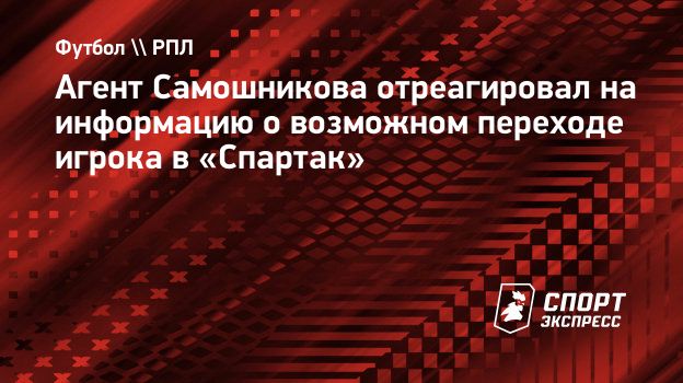 Агент Самошникова отреагировал на информацию о возможном переходе игрока в «Спартак»