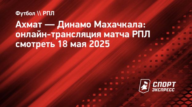 «Ахмат» и «Динамо» Махачкала сыграют в 29-м туре чемпионата России в воскресенье, 18 мая. Игра пройдет на «Ахмат Арене» в Грозном и начнется в 14.00 по московскому времени.