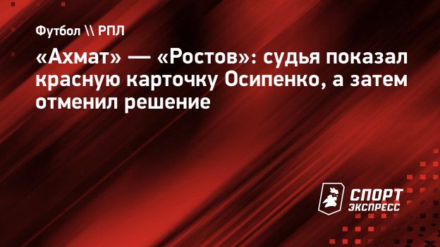 «Ахмат» — «Ростов»: судья показал красную карточку Осипенко, а затем отменил решение
