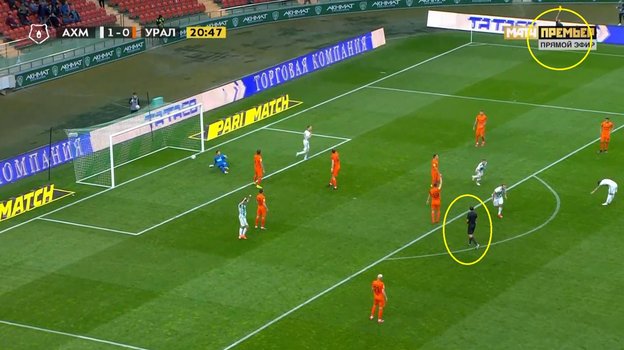 На 21-й минуте матча 9-го тура Тинькофф чемпионата России «Ахмат» — «Урал» верное решение приняли арбитр Павел Кукуян и его второй ассистент Рашид Абусуев, не засчитав взятие ворот гостей.
