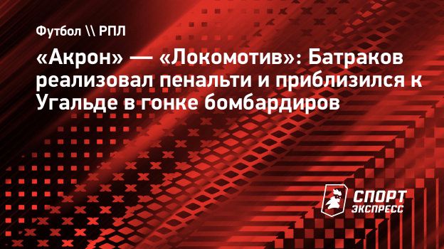 «Акрон» — «Локомотив»: Батраков реализовал пенальти и приблизился к Угальде в гонке бомбардиров