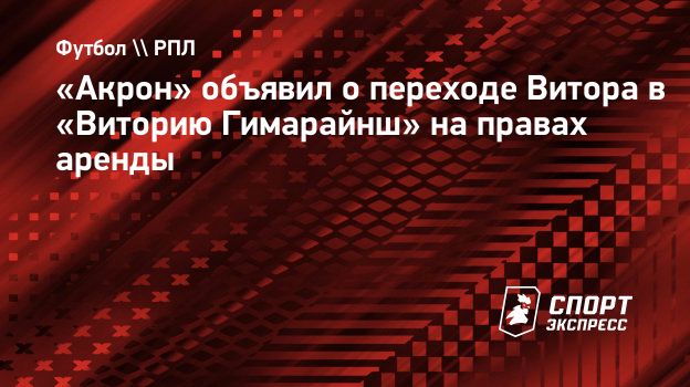 «Акрон» объявил о переходе Витора в «Виторию Гимарайнш» на правах аренды
