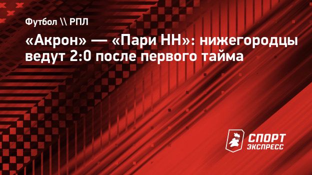 «Пари НН» обыгрывает «Акрон» по итогам первого тайма матча 17-го тура чемпионата России — 2:0.