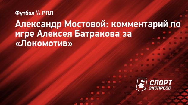 Бывший футболист «Спартака» Александр Мостовой оценил игру полузащитника «Локомотива» Алексея Батракова, который вошел в список номинантов премии «Первая пятерка».