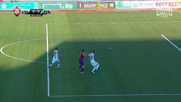 На 62-й минуте матча 6-го тура чемпионата России "СКА-Хабаровск" – "Рубин" (1:1) арбитр Алексей Николаев поступил правильно, не назначив пенальти в ворота гостей. Нападаюший Мирослав Маркович вел единоборство с защитником Федором Кудряшовым и по собственному желанию упал на газон, рассчитывая, что арбитр накажет игрока казанцев 11-метровым ударом. Однако судья этого делать не стал. (Александр БОБРОВ)