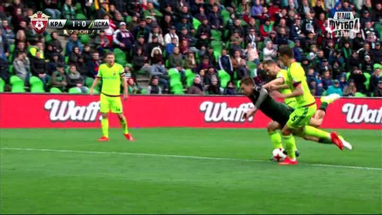 На 73-й минуте матча 22-го тура чемпионата России "Краснодар" - ЦСКА арбитр Сергей Иванов правильно не назначил пенальти в ворота гостей, но ошибочно не наказал их штрафным ударом.