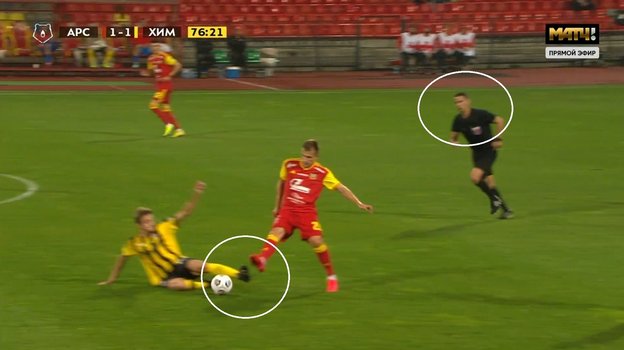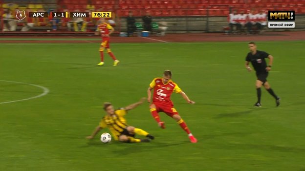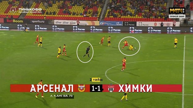 На 77-й минуте матча 5-го тура Тинькофф чемпионата России «Арсенал» — «Химки» ошибся арбитр Николай Волошин, вынесший второе предупреждение полузащитнику гостей Данилу Казанцеву и удаливший его с поля. В единоборстве с Владиславом Пантелеевым он не дотронулся до соперника ногой, как могло показаться судье. Контакта не было.