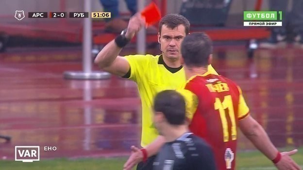 В действия судьи вмешались видеоассистенты Игорь Панин и Валентин Мурашов. В итоге Левников во второй раз отправился к монитору, посмотрел видеозапись и отменил свое первоначальное решение. Он показал вторую желтую карточку Ткачеву и удалил его с поля, а также назначил 11-метровый удар в ворота «Арсенала».