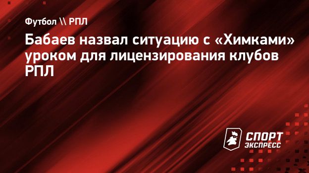Генеральный директор ЦСКА Роман Бабаев считает, что ситуация с клубом «Химки» показывает, что систему лицензирования для выступления в РПЛ нужно улучшить.